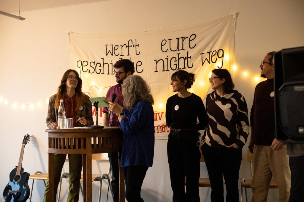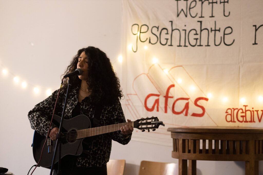 Für die wertschätzenden Grußworte bedanken wir uns bei Michael Hollmann (Präsident des Bundesarchivs), Frank M. Bischoff (Präsident a.D. des Landesarchivs NRW), Michael Reitemeyer (Leiter der Kulturabteilung im Ministerium für Kultur und Wissenschaft NRW) und Andreas Pilger (Leiter des Stadtarchivs Duisburg). Der Musikjournalist Michael Kleff übergab dem afas symbolisch die Michael Kleff Research Collection und schließlich wurde über „Freie Archive in Zeiten von Fake News und Rechtsruck“ auf der Bühne diskutiert. Ausgetauscht haben sich hier Jürgen Bacia und Miriam Bajorat vom afas mit Britta Rabe (Komitee für Grundrechte und Demokratie), Bettina Joergens (Landesarchiv NRW) und Martin Stankowski (Kölner Aktivist und Journalist). Für musikalische Begleitung der Feier sorgte die Singer-Songwriterin Canan. Cornelia Wenzel aus unserem Vorstand moderierte den Nachmittag.